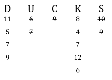 I learned this game at a math conference about 17 years ago and cannot remember who taught it to me. Sorry, un-credited math educator. You are forever in my debt. I remember he called this game “SKUNK”, but I re-named it because I love the Anaheim Ducks, and it’s also easier for each round of the game to be represented by a different letter in the alphabet.