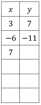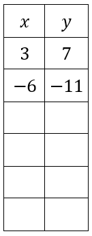 2. Write a T-Chart on the board and complete two rows of the chart using random inputs. I usually do one positive integer and one negative integer to begin with. I never start with zero.