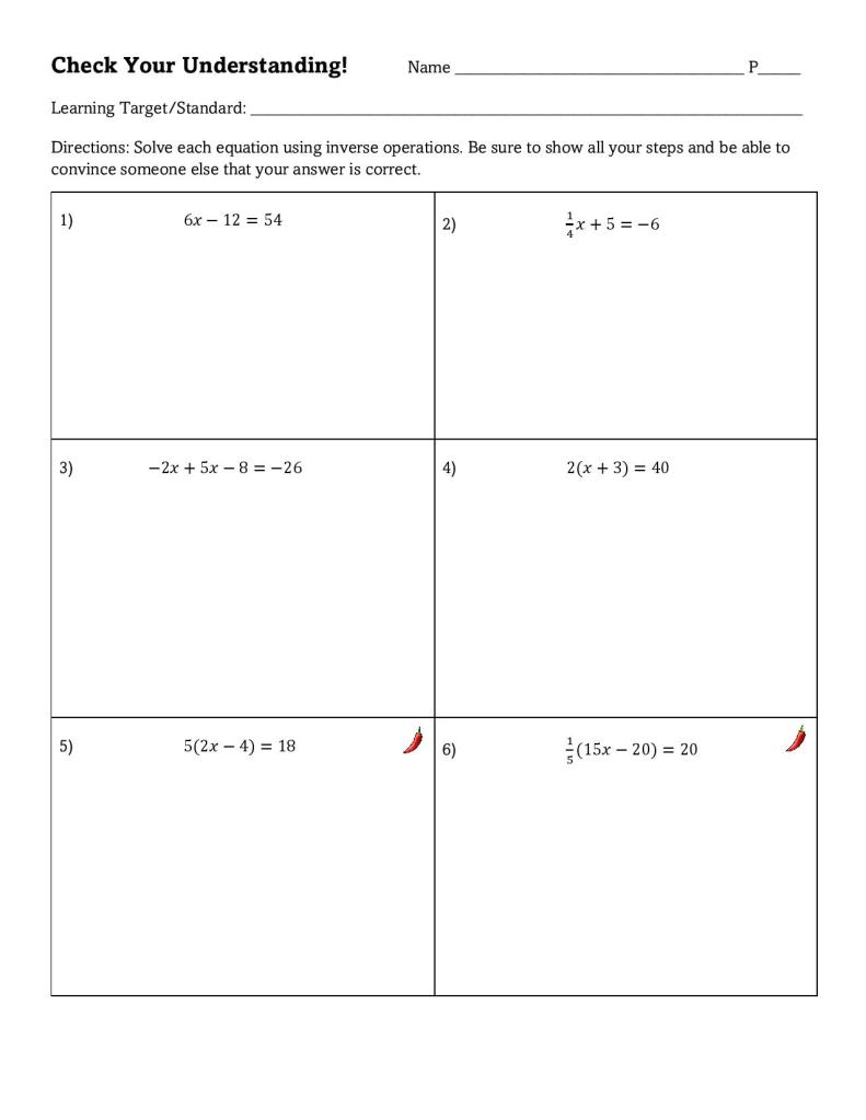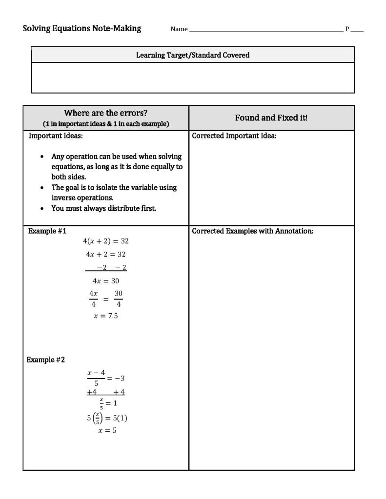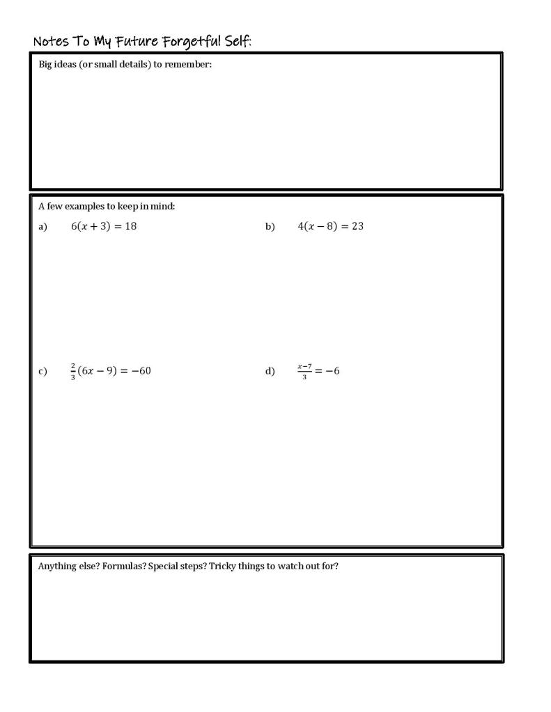 On day 2 I have printed and ready both the Note-Making and the Student Exit Ticket, as well as the solutions posted online. Here’s an example of that from my 8th grade Solving Equations lesson: