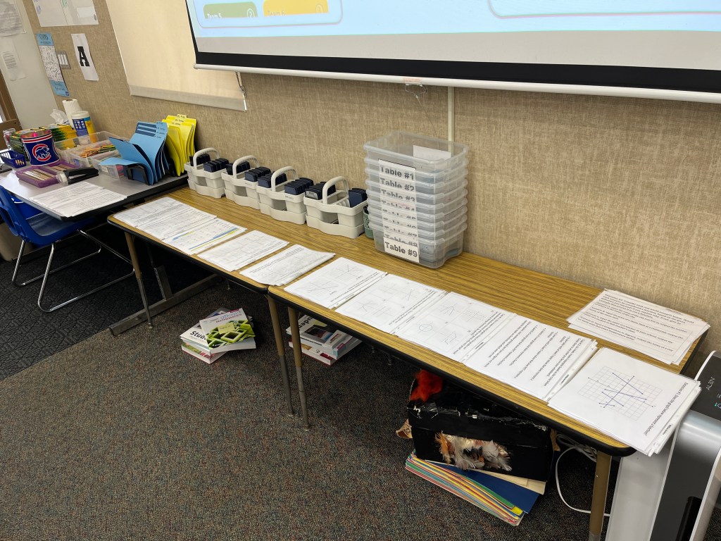 One thing I asked for during Back To School Night was donations of sheet protectors, and the parents really came through. Now, once I have prepped a lesson, I just keep the set of cards for next year, provided I don’t make any edits to the lesson task cards. I know for a fact that I don’t need to touch my systems of equations substitution lesson for next year, so that one is ready to go!