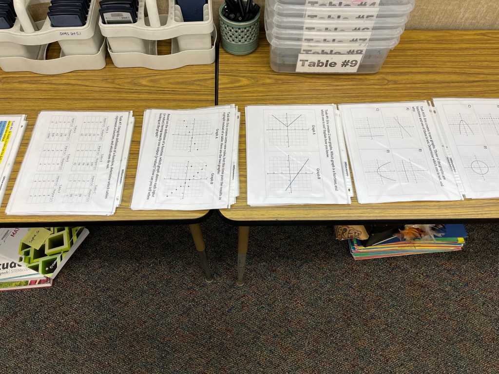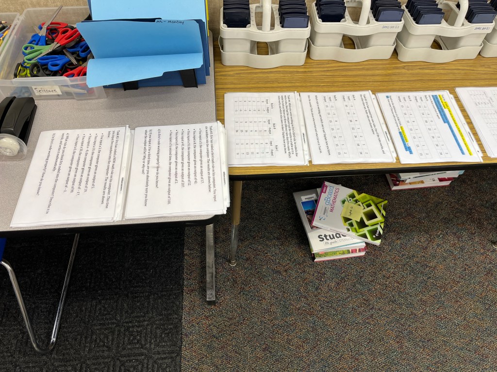 Before the lesson starts, I have the first task already hanging on the walls ready to go. The rest of the tasks are printed out, organized, and waiting on my front supply table.