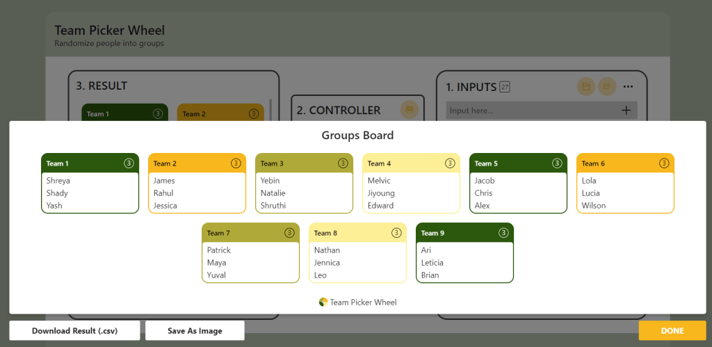 Any time my students were working at the Thinking Stations in my room they were grouped randomly in a visible way. My chosen strategy was to use the random team picker on the Picker Wheel web site. It was very easy to set up all of my classes and switch between periods, as well as set how many groups and the number of students per group. At the beginning of the period I could easily remove students from the list who were absent that day, spin the wheel on the overhead projector, and use the Team # as the Thinking Station # that students would go to. After the first few times doing this, students knew instantly what to do, and did it.