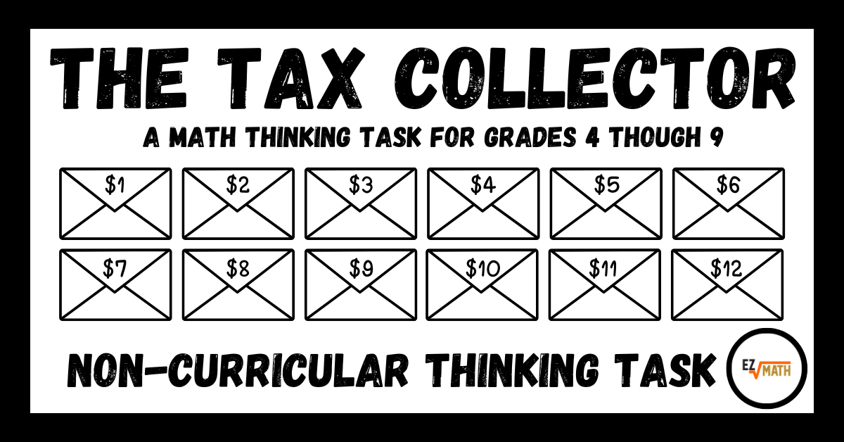 The Tax Collector is a great Non-Curricular Thinking Task that challenges students to get the most amount of money possible, while thinking about composite numbers, prime numbers, and factors.